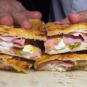 con mozzarella, pesto genovese, pomodori secchi di Sicilia, scaglie di grana padano DOP